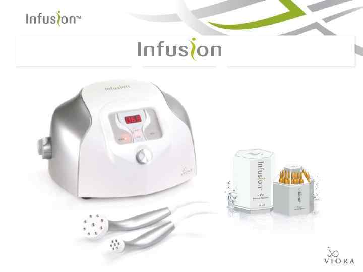 Что представляет собой Infusion™ ? Infusion™ - инновационная технология Infusion™ - позволяет вводить через кожу любые препараты на водной основе Infusion™ - это технология трансдермальной доставки активных субстанций к живым клеткам, ионное внедрение препаратов за счет введения в кожу посредством электроимпульсного открытия мембраны клетки, Infusion™ -технология отличается от всех существующих на рынке, таких как, например, микротоки, магнитотерапия и ионофорез (отличие от ионофореза заключается в том, что вводимые молекулы не разделяются на положительные и отрицательные ионы, а доставляются внутрь клетки целиком) w Электропорация (электроимпульсное открытие клеточных пор) Infusion™ -это технология, применяемая для введения трансдермальных продуктов, которая помогает достичь таких же эффективных результатов, как и при традиционной мезотерапии, но при этом не вызывает боли, травм и гематом– но только безиспользования шприцов, без боли и без побочных явлений! w Техника Электропорация, известна также как “виртуальная мезотерапия” w Неинвазивная методика поставки препарата w Электропорация открывает пору и при помощи электрического импульса препарат вводится в клетку. Неинвазивная методика введения препаратов любого типа. Проникновение непосредственно в клетку. w Область применения неограничена и зависит от вводимого вещества w Трансдермальный метод является альтернативой традиционным способам введения активных веществ и лекарств. Его цель состоит в проведении локализованной терапии, которая может иметь системное воздействие, и тем самым избежать нежелательных побочных эффектов других методов