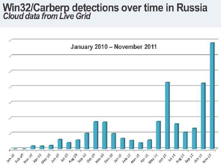 95% инцидентов -результат деятельности специализированных банковских троянов: • Win 32/Shiz • Win 32/Hodprot • Win 32/Sheldor • Win 32/RDPdoor • Win 32/Carberp