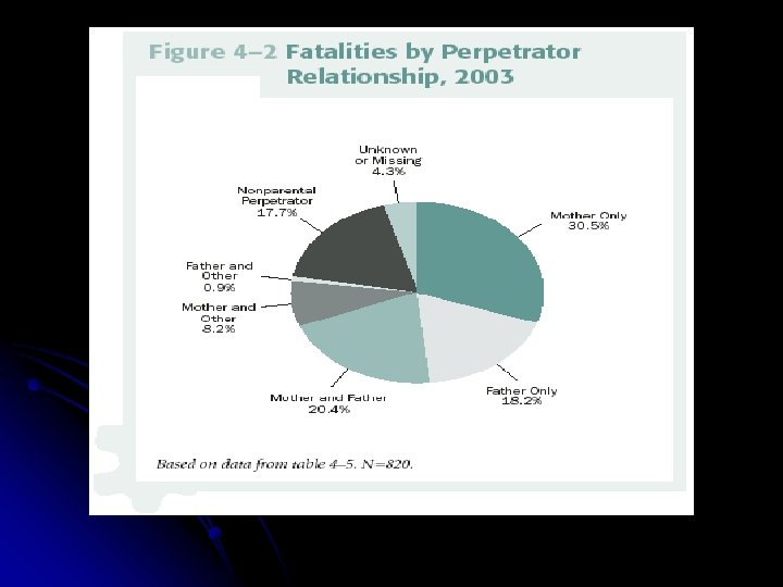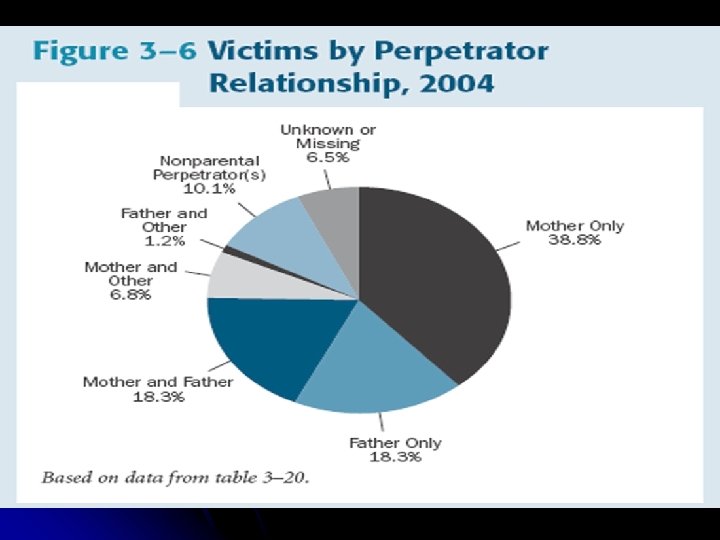 US National Survey on Child Maltreatment : Health and Human Services Report 2004 l Children's Bureau Statistics and Research Report l http: //www. acf. hhs. gov/programs/cb/pubs/cm 04/index. html Sample size 718, 948 l For 2004, 57. 8 percent of the perpetrators were women and 42. 2 percent were men. l