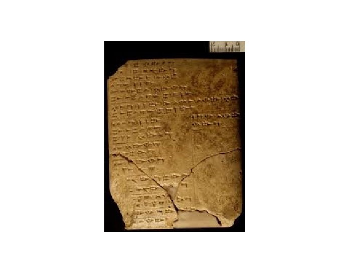 Descubrimientos de Nuzi y Mari (1925 y 1936) • En ambos lugares se descubrieron tablillas (más de 20. 000) que datan del siglo XV a. C. • Importancia: arrojan luz sobre el contexto histórico y cultural de los patriarcas. Ej: la relación entre Abrahám y su esclava Agar (Cfr. Gn 16), la adopción de un esclavo como heredero (Cfr. Gn 15, 2), etc . Una de las tablillas de Zimri -Lin, rey de Mari.