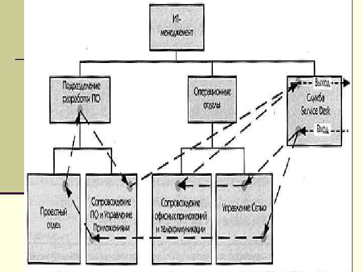 5. 14. Процессы и организационные подразделения Большинство компаний имеют иерархическую структуру. Они состоят из подразделений, объединяющих группы сотрудников. Существуют разные принципы формирования подразделений, например, по типу заказчика, продукту, региону или области знания. Как правило, в предоставлении ИТ-услуг (сервисов) участвуют одновременно несколько отделов и затрагиваются несколько областей знаний. Например, если существует ИТ-сервис по предоставлению доступа к программе бухгалтерского учета на центральном компьютере, то в это будет вовлечено несколько подразделений.