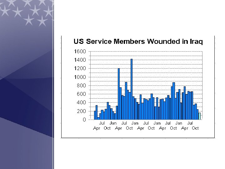 DATA • Wounded: Over 50, 000 • Disabled: Over 37, 000 • 120, 00 mental problems (VA) • 200, 000 treated at VA Hospitals • $50 million donated to avoid foreclosures or evictions