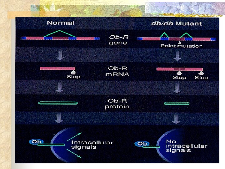 Leptin research results n Weight lost with mutated ob gene n Not effective without genetic defect ob gene n More obese less sensitive high level leptin