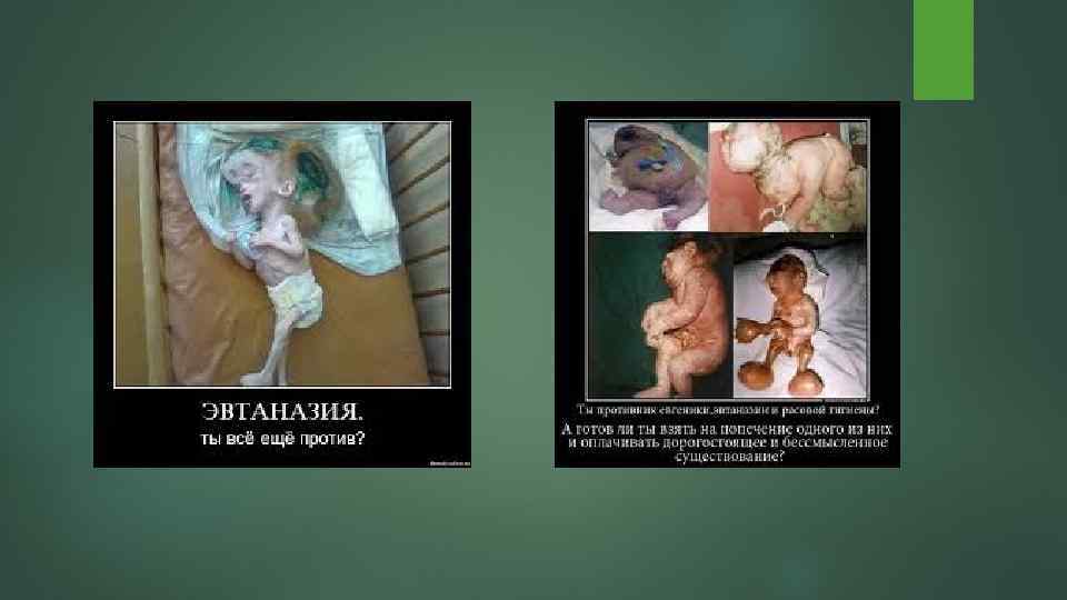Эвтаназия благо или преступление? Правы те. кто считает, что сейчас актуальным является вопрос не о том, разрешать или не разрешать врачам применение эвтаназии , а о том, когда и при каких условиях ее допускать и как при этом организовать контроль за правомерностью ее осуществления. Подавляющее большинство врачей и юристов считает, что эвтаназия это клятвопреступление и уголовный беспредел и считают ее совершенно недопустимой, даже если она предпринимается исключительно "из сострадания", по настойчивому требованию больного, которому в любом случае предстоит в скором времени умереть.