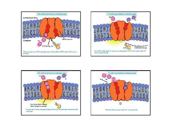 Ионные насосы • В результате работы ионных насосов создаются и поддерживаются трансмембранные ионные градиенты: • концентрация Na+, Ca 2+, Cl– внутри клетки ниже, чем снаружи (в межклеточной жидкости) • концентрация K+ внутри клетки выше, чем снаружи.