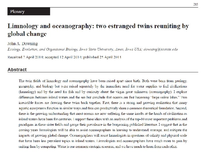 Limnology as a science growth both in publications and in number of journals #sil 2016 #limnology