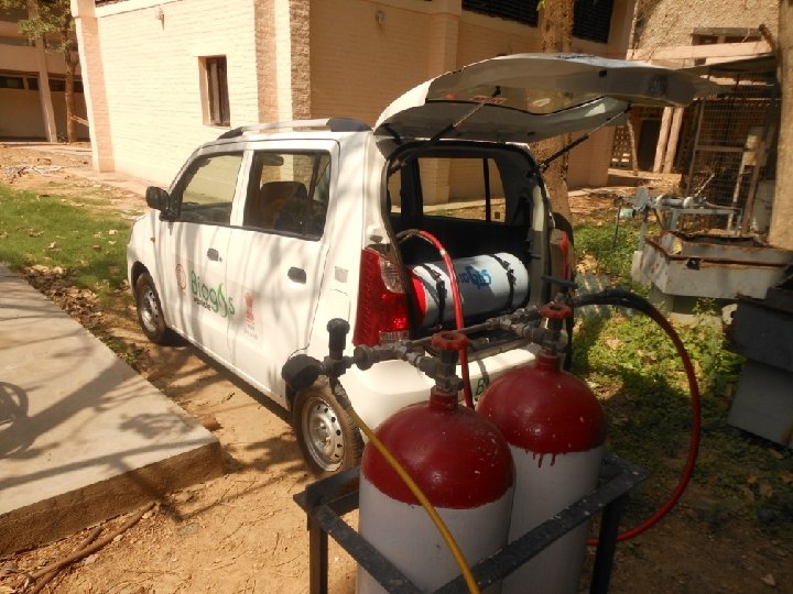 Biogas enrichment and bottling system with biogas vehicle at IIT Delhi, India