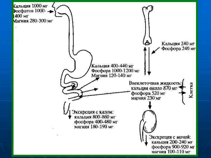 Кальций (Ca) превалирующий катион организма, минеральный компонент скелета, макроэле мент с множеством физиологических функций. 99% кальция организма содержится в костях скелета и зубах в виде гидроксиапатитов соединений кальция с фосфатами. Лишь около 1% кальция находится в крови и дру гих биологических жидкостях организма. Концентрация цитоплазматического кальция составляет менее 1/1000 от содержания его во внеклеточной жидкости.
