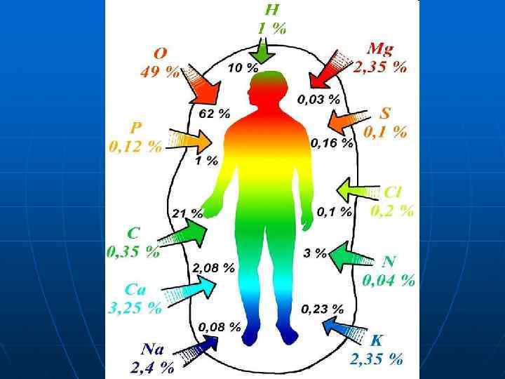 Биогенные элементы, содержание которых превышает 0, 01% от массы тела, относят к макроэлементам. К ним отнесены 12 элементов: органогены, ионы электролитного фона и железо. Еще более поразительно, что 99% живых тканей содержат только шесть элементов: С, Н, О, N, Р, Ca. Элементы К, Na, Mg, Fe, Сl, S относят к олигобиогенным элементам. Содержание их колеблется от 0, 1 до 1%. Биогенные элементы, суммарное содержание которых составляет величину порядка 0, 01%, относят к микроэлементам. Содержание каждого из них 0, 001% (10 3 – 10 5%). Большинство микроэлементов содержится в основном в тканях печени. Это депо микроэлементов. Элементы, содержание которых меньше чем 10 5%, относят к ультрамикроэлементам. Данные о количестве и биологической роли многих элементов невыяснены до конца.