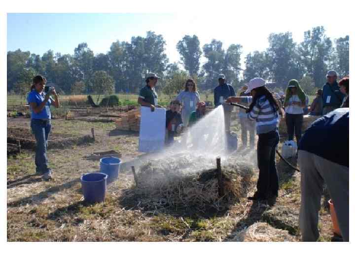 Рецепт Биоинтенсивного компоста • Незрелая (зеленая) растительная масса (является источником азота) – 2 объемных доли. • Зрелая (сухая) растительная масса (является источником углеродного материала, который в свою очередь стабилизирует азот) – 2 объемных доли. • Почва (уничтожает неприятные запахи и отгоняет мух) – 1/2 объемных доли. • Вода