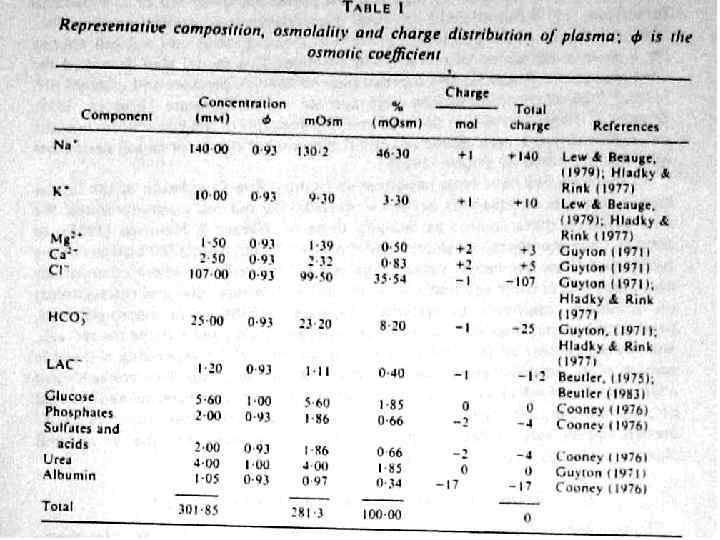 Основные ограничения: 1) Электронейтральность 2) Баланс осмотического давления (буферные свойства)