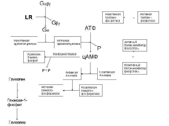 Схема функционирования G-сопряженного рецептора: 10 -100 G-белков х 10 -100 молекул ц. АМФ усиление в 100 -10000 раз! ц. АМФ в 104 -108 раз!!