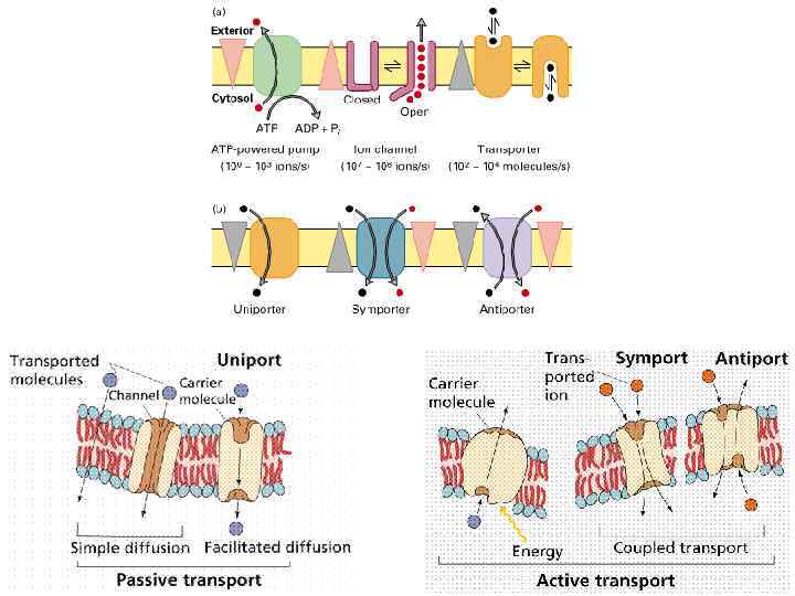 Пассивный транспорт число Фарадея заряд (целое число, в единицах электронов) i-го иона потенциал электрического поля в мембране в линейном приближении: Одномерный случай: подвижность Коэффициент проницаемости: Если молекула не заряжена: В равновесии (J = 0): Доннаново равновесие (уравнение Нерста)