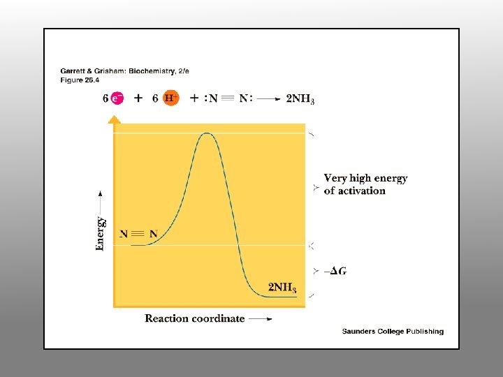 Why should nitrogenase need ATP? ? ? • N 2 reduction to ammonia is thermodynamically favorable • However, the activation barrier for breaking the N-N triple bond is enormous • 16 ATP provide the needed activation energy