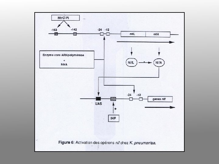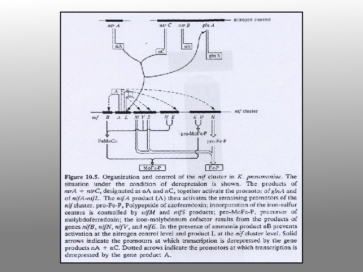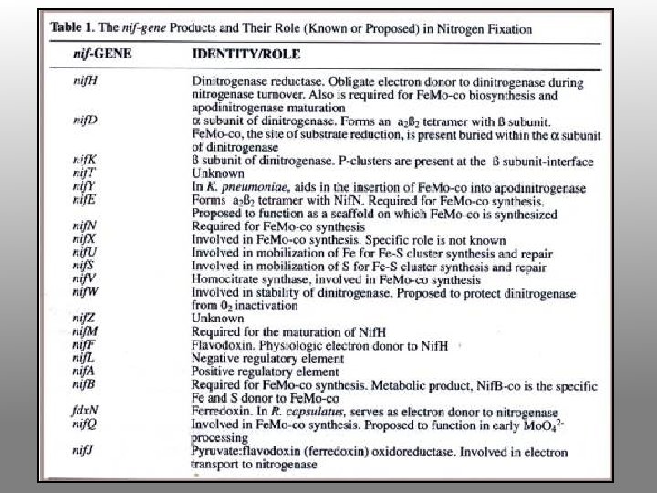 Nitrogen fixation in Klebsiella • Nif system is turned on when – No fixed nitrogen – Anaerobic – Temperature below 30°C • Nitrogenase is made – Converts N 2 to NH 3