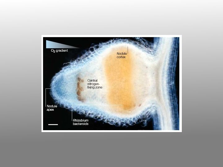 Exchange of nutrients during Rhizobium-legume symbiosis Malate to bacteria nitrogenfixing bacteroid containing Rhizobium TCA ATP ADP+Pi N 2 NH 4+ to plant
