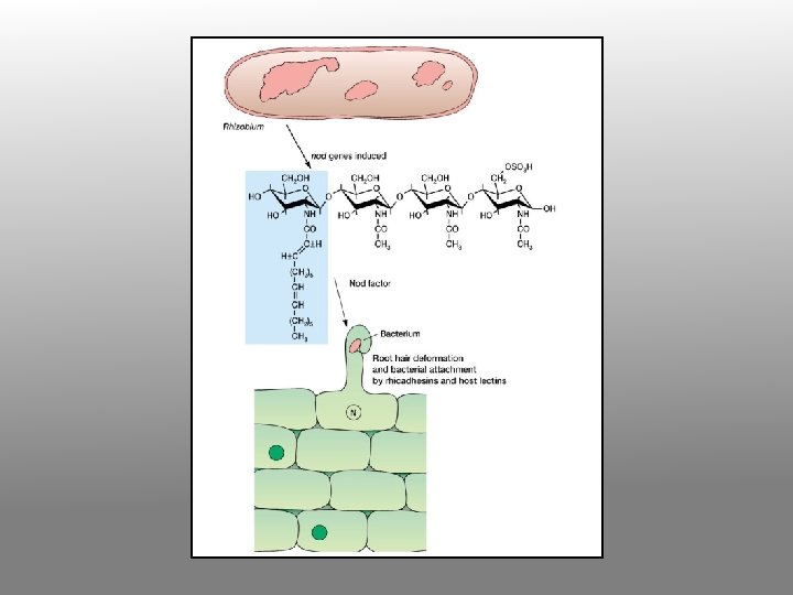 Nod factor biosynthesis Nod. M Nod. C Nod. B Nod factor R-group “decorations” determine host specificity Nod Factor: a lipooligosaccharide