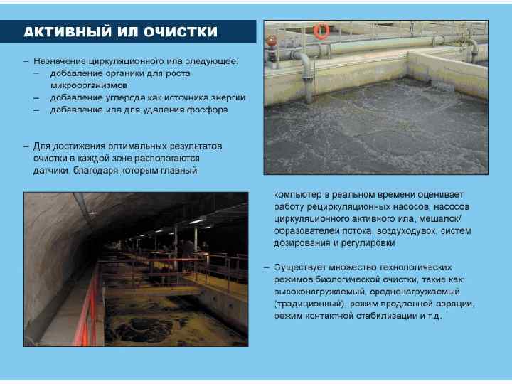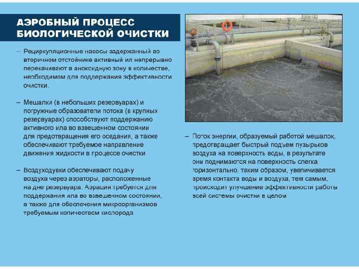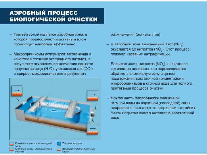 Биологическая очистка применяется для удаления многих растворенных органических и некоторых неорганических сероводорода, сульфидов, аммиака, нитритов и др. ) веществ. Процесс очистки основан на способности микроорганизмов использовать эти вещества для питания в процессе жизнедеятельности – органические вещества для микроорганизмов являются источником углерода.