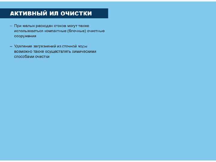 Перед аэротенком СВ должна содержать не более 150 мг/л ВВ и не более 25 мг/л НП. Температура не ниже 6 и не выше 300 С, р. Н в пределах 6, 5 – 9. Концентрация растворенного кислорода – 1, 5 – 2 мг/л После контактирования СВ с илом поступает во вторичный отстойник, где происходит отделение ила от воды. Остаточные концентрации: ВВ 10 -12, БПК 15 -20