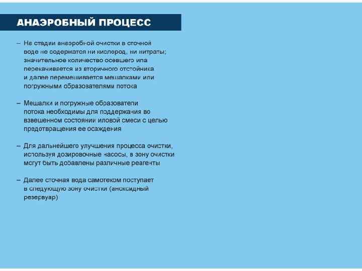 Растворенный кислород Анаэробная зона – 0 мг/л Аноксидная зона – 0, 5 мг/л Аэробная – 1, 5 – 2 мг/л Время пребывания в сооружении, в среднем, – 12 – 14 ч 49