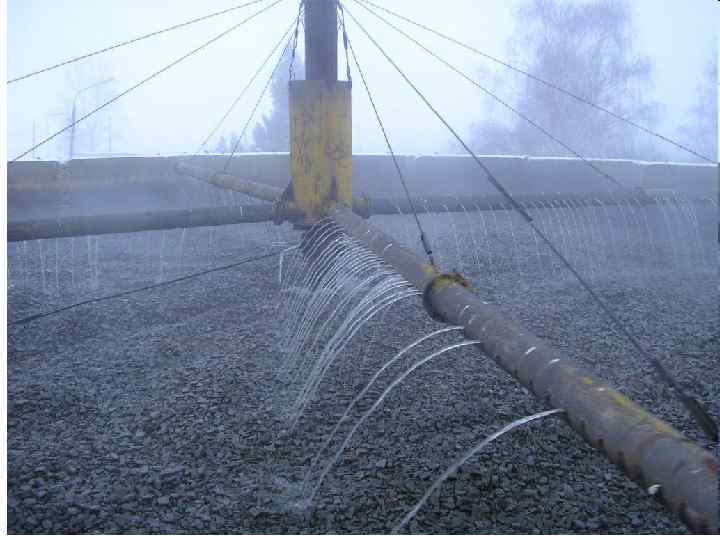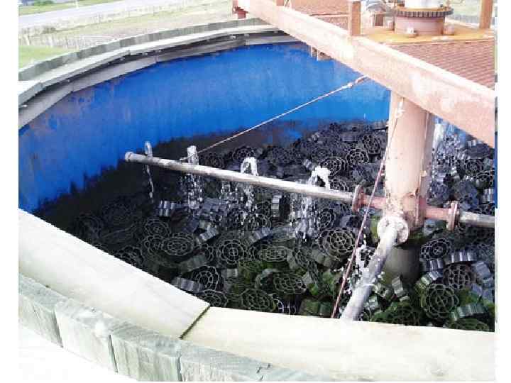 http: //www. voda-proekt. narod. ru/rjbnzavod. html Биофильтр (аэрофильтр) - очистное сооружение для биологической очистки сточных вод. Биофильтр представляет собой резервуар со сплошными стенками из железобетона и двойным дном: нижним – сплошным и верхним – решетчатым (колосниковая решетка) для поддержания загрузки. В аэрофильтры необходима подача воздуха, необходимого для жизнедеятельности микроорганизмов, в междудонное пространство. В качестве загрузки рекомендуется плоскостная полимерная загрузка. Сточная вода подается в биофильтр через реактивные разбрызгиватели и равномерно распределяется по всей площади фильтра. Затем очищаемая вода проходит через слой загрузки, где происходит окисление органических веществ, растворенных в сточной воде.