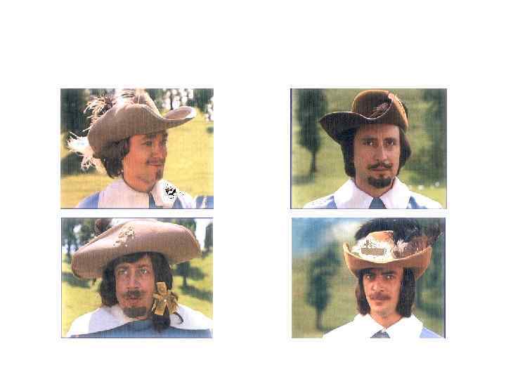 • Существует четыре типа темперамента: • Холерический. Типичный представитель Д’Артаньян — нервный, взрывной, энергичный, готовый в любой момент полезть в драку. • Флегматический. Это Атос — сосредоточенный, уравновешенный, долго обдумывающий, немногословный. «Пацан сказал — пацан сделал» • Меланхолический. Конечно же, Арамис — мечтательный, отрешенный, восприимчивый, готовый страдать, может даже, всплакнуть украдкой. • И Партос — типичный представитель сангвинического темперамента. Эмоциальные, готовые посмеяться, любящие получать удовольствия от жизни.