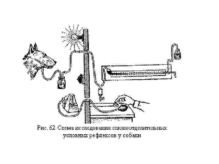 Учебник С. 263 • 15. 1. 2. Методы изучения условных рефлексов • Классические исследования условнорефлекторной деятельности организма, заложившие основу учения И. П. Павлова о высшей нервной деятельности, были проведены с использованием рефлексов слюноотделения (эффекторное звено рефлекторной дуги — слюнные железы). Методика достаточно простая и сводится к следующей схеме. Для выработки положительного (или отрицательно го) пищевого условного рефлекса животному предъявляют индифферентный по отношению к безусловному рефлексу слюноотделения стимул (например, световой или звуковой раздражитель) с последующим или одновременным подкреплением его безусловным раздражителем (пища). • • Для сбора слюны у животного предварительно производят операцию выведения протока слюнной железы (околоушной, подъязычной или подчелюстной) на наружную поверхность кожи. Характеристики как безусловного, так и вырабатываемого на его основе условного рефлекса изучают путем анализа качественного или количественного состава выделяемой слюны.