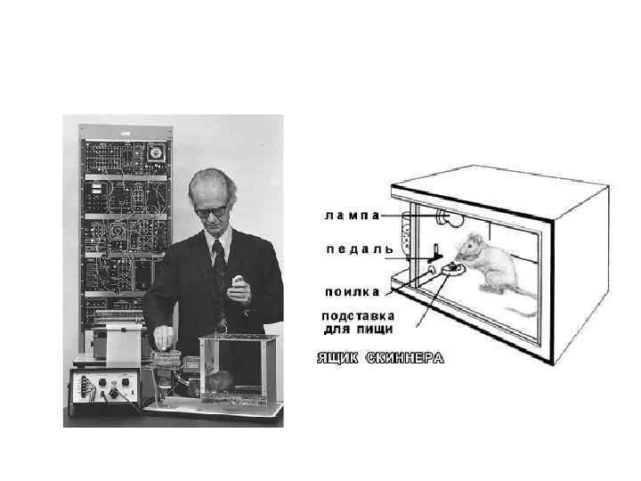 • Основной идеальный объект радикального бихевиоризма — оперантный рефлекс • Б. Ф. Скиннер так же, как и И. П. Павлов, полагал, что жизнь организма осуществляется за счет безусловных и условных рефлексов, но в отличие от русского исследователя он выделяет два типа обусловливания — классическое, или респондентное, изучавшееся в павловской школе, и оперантное обусловливание. Рассмотрим основные различия между этими типами. Б. Ф. Скиннер так схематизирует их (Skinner, 1935) [53]: