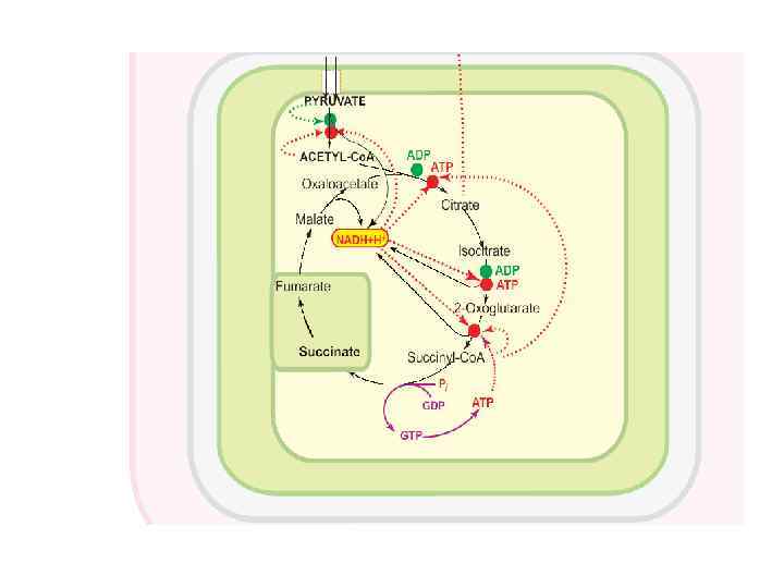 • Так как АТФ является косвенно конечным продуктом ЦТК, то ее избыток блокирует ЦТК, а значит АДФ стимулирует ЦТК. (АДФ рассматривается как аллостерический активатор изоцитратдегидрогеназы). • Стимулятором ЦТК является также кислород, потому что он стимулирует распад АТФ. • Нормальная концентрация Ca 2+ в клетке 10 -7 моль.