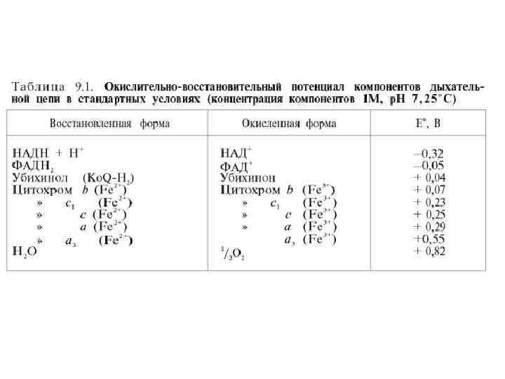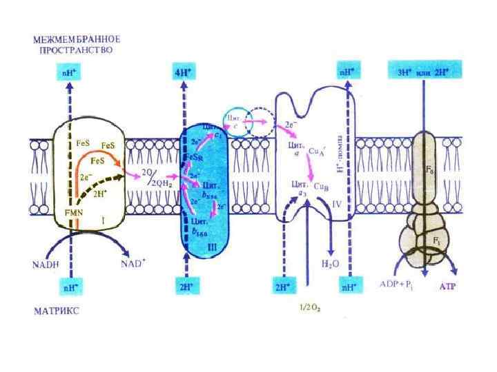 I – NADH – дегидрогеназа II – сукцинат-дегидрогеназа III – система цитохромов b, c 1 IV – цитохромы а, а 3, цитохромоксидаза.