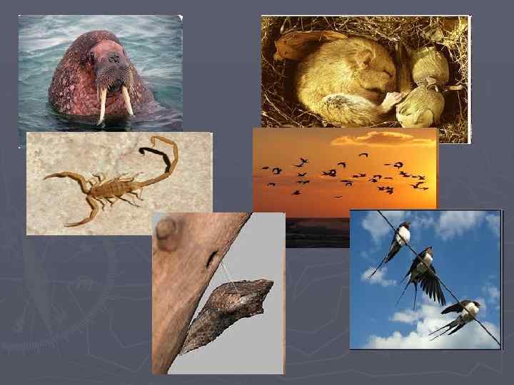 ► 1. Виберіть з перелічених добові (І), сезонні (ІІ), річні (ІІІ) ритми І ? ІІІ? а) рухова активність тарганів; б) закривання на ніч пелюстків квіток шафрану, кульбаби; в) линяння в зайця; г) опадання листків; д) яйце → личинка → лялечка → доросла комаха ► 2. 2. Чому сезонні зміни інтенсивності процесів життєдіяльності у жителів тропіків виражені не так чітко, як у жителів помірних широт? МАРЧЕНКО О. Є.
