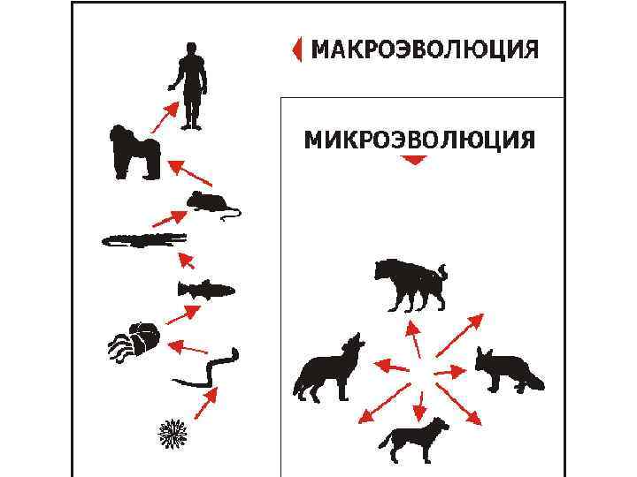 Уровни эволюции: микроэволюция — это распространение в популяции малых изменений в частотах аллелей, среди нескольких поколений; изменение на внутривидовом уровне. Такие изменения происходят из-за следующих процессов: мутации, естественный отбор, искусственный отбор, перенос генов и дрейф генов. Эти изменения приводят к дивергенции популяций внутри вида, и, в конечном итоге, к видообразованию.