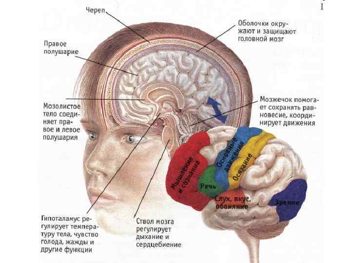 Человеческий мозг • центральный отдел нервной системы позвоночных животных, образованный нервными и глиальными клетками и их отростками. У позвоночных животных (в том числе и у человека) различают головной мозг, помещённый в полости черепа, и спинной, находящийся в позвоночном канале.