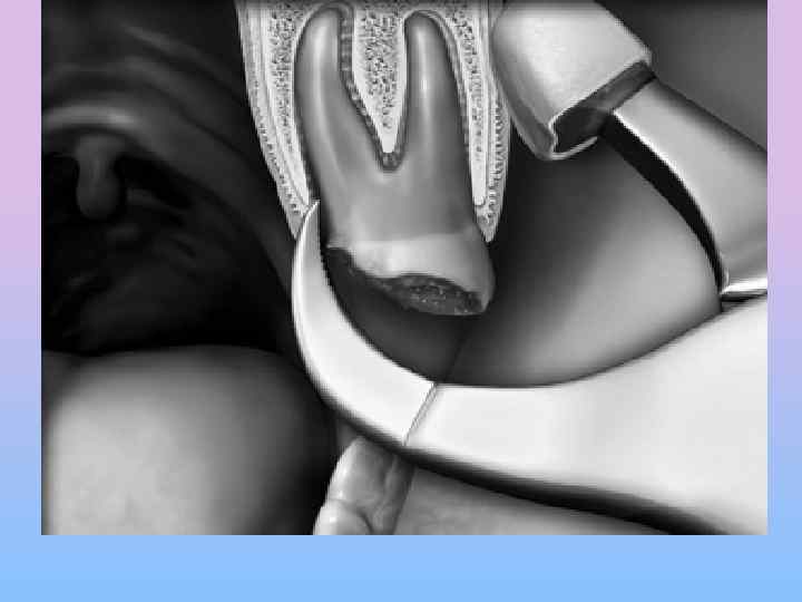 Физиологические щипцы Physics Forceps – это зубные экстракторы, которые используют механику рычага 1 -ого рода. Одна ручка устройства связана с «бампером» , который действует как точка опоры при извлечении зуба. Клюв экстрактора помещается с лингвальной поверхности корня зуба и в десневой бороздке. Бампер помещается в фасциальную область альвеолы в области переходной складки. Никакого давления, сжатия не применяется. Вместо этого ручки инструмента вращаются как единое целое на несколько градусов и затем останавливаются приблизительно на 1 минуту. Постоянное, устойчивое давление вызывает деформацию, которая, в свою очередь, приводит к расширению кости и ослаблению периодантальных связок. Последующее медленное вращение ручек инструмента еще на несколько градусов в течении 10 – 30 секунд приводит к разрыву связок и зуб поднимается на несколько миллиметров из лунки. Таким образом, зуб полностью освобожден и готов к удалению из лунки.