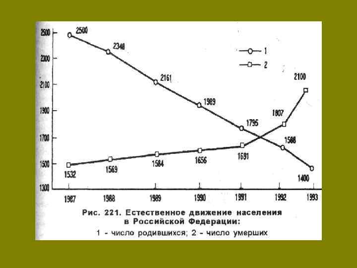 Коэффициент рождаемости и валовый национальный доход на душу населения в 2001 г. n С ростом уровня благосостояния в обществе коэффициент рождаемости постепенно снижается. В беднейших странах мира он составляет от 20 до 50 рождений на 1000 чел. в год. Ни в одной из богатых стран коэффициент рождаемости не превышает 20. PRB; World Bank. )