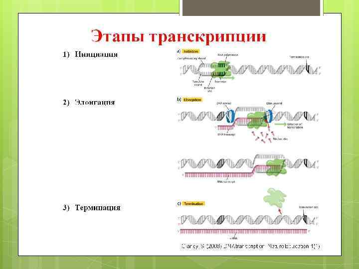 ТРАНСКРИПИЦЯ (лат. переписывание) Переписывание информации, которое происходит путём синтеза на 1 из цепей молекулы ДНК одноцепочечной молекулы РНК, последовательность нуклеотидов который точно соответствует последовательности нуклеотидов матрицы-полинуклеотидной цепи ДНК