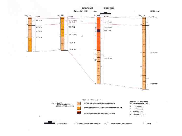 Биозоны могут устанавливаться по глубине отложений по фактам появления и вымирания какого-либо вида микрофоссилий, по фазам эволюционного развития вида. Рис. 6. Биостратиграфические интервалы 4 -х видов планктонных фораминифер Neogloboquadrina