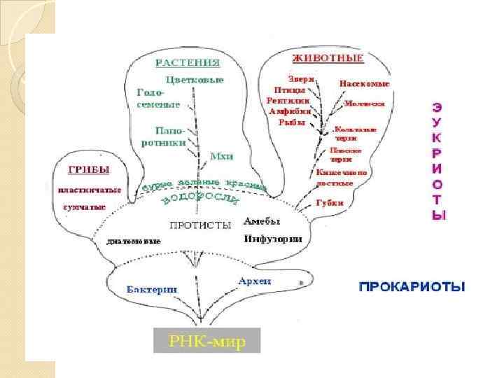 Р. Виттэкер (R. Whittaker) предложил схему, по которой все живые организмы, имеющие клеточное строение, представлены разделенными на пять царств. Такая система классификации живого мира отражает три основных уровня его клеточной организации: