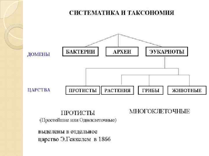 Данные о различии в строении клеток микроорганизмов, входящих в группу Protista, начали накапливаться с конца XIX в. Это повлекло за собой деление группы на высшие и низшие протисты. Затем открыли бактерии и выделили их в отдельное царство. Позже было в отдельное царство – грибы.
