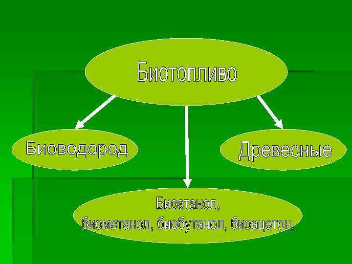 Эфиры § Биодиметил эфир (bio-dme) добавляется к дизельному топливу (2%) для улучшения его качеств. Может быть получен из сингаза или чистого метанола в присутствии алюмосодержащих катализаторов. § Биометилтрибутиловый эфир (bio-mtbe) – аналогичен bio-etbe, получается смешиванием биометанола (36% по объему) и третичного бутанола при нагревании и катализаторах. § Биоэтилтрибутиловый эфир (bio-etbe). Получается смешиванием биоэтанола (48% по объему) и третичного бутанола с последующим нагреванием в присутствии катализаторов (октановое число – 112). Используется в смеси с бензином для любых двигателей.