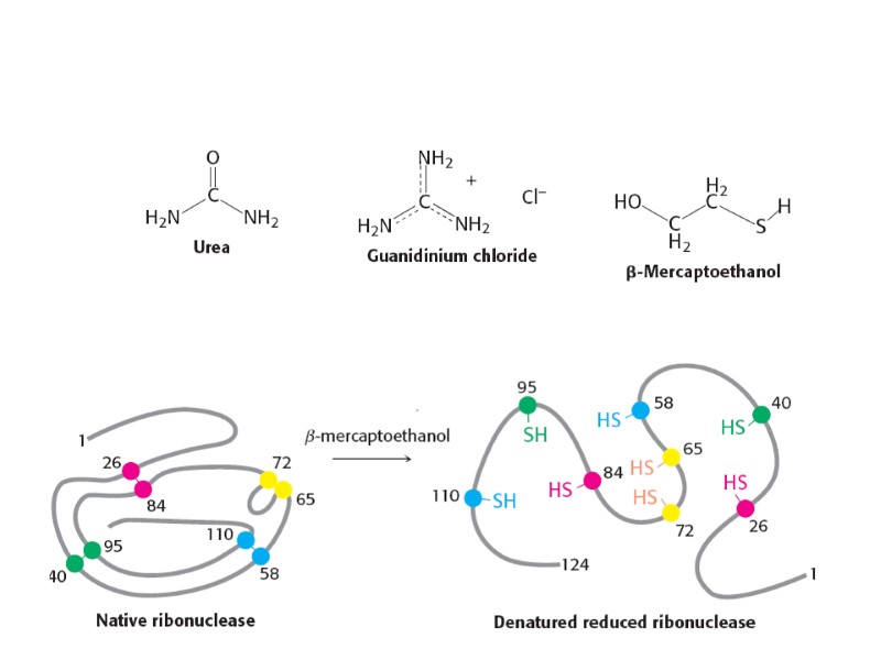Белки.Структурная организация белков. Первичная структура. Вторичная структура белка, зависимость от первичной структуры. От чего зависит тип укладки полипептидных цепей в - спиральные и -складчатые структуры. Глобулярные и фибриллярные белки их свойства и примеры. Третичная структура: какие связи участвуют в образовании стабилизации третичной структуры белка. Объясните фразу: четвертичная структура – это субъединичная структура белков. Приведите примеры белков, состоящих из нескольких субъединиц. Метаболоны –пятый уровень организации белков Свойства белков. Молекулярная масса, примеры низко- и высокомолекулярных белков. Амфотерность белков. От чего зависит изоэлектрическая точка белка? Растворимость белка и коллоидные свойства растворов белков. Состояния золя и геля. Денатурация, что происходит с белковой молекулой при денатурации? Какие факторы вызывают денатурацию белков? Чем отличается гидролиз от денатурации? Классификация белков, простые и сложные белки. . Функции белков в живых организмах – перечислить функции и какие конкретные белки их выполняют. Примеры хромо - глико-, липо - и фосфопротеидов, их функции в клетках животных и растений.
