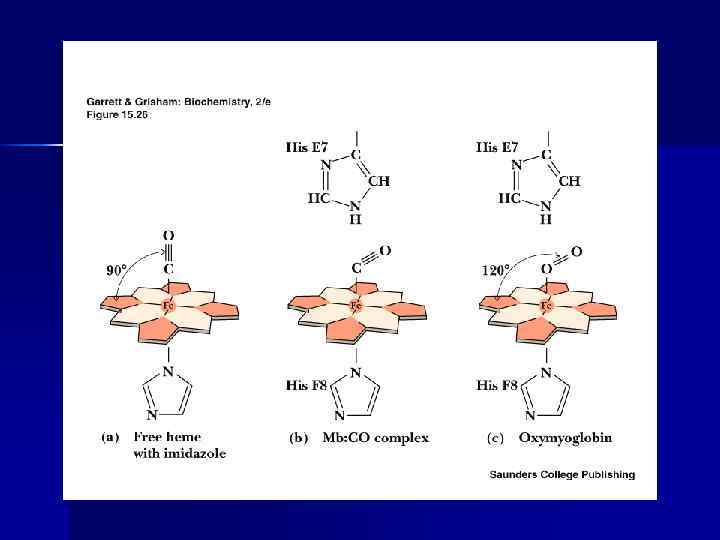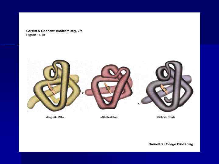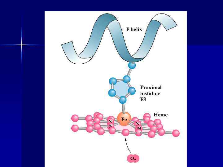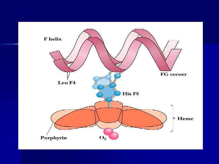 Гем присоединяется к глобину n n Координационной связью между железом гема и азотом имидазольного ядра гистидина Гидрофобным взаимодействием тетрапиррольной части гема и гидрофобными АК в гемовом кармане
