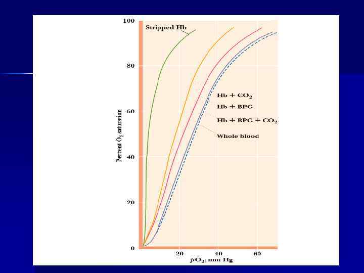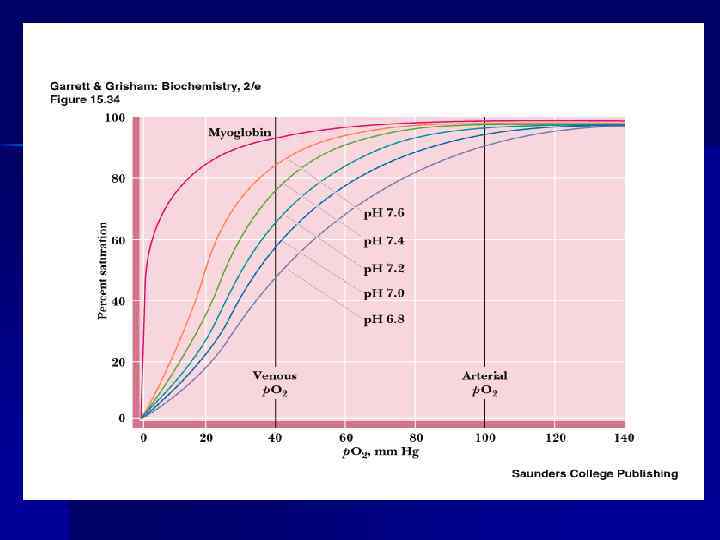 Оксигенирование гемоглобина n n Оксигенирование гемоглобина в лёгких зависит от парциального давления и наличия кооперативного эффекта Кооперативный эффект – увеличение сродства каждого последующего протомера Нb к О 2 вследствие конформационных изменений