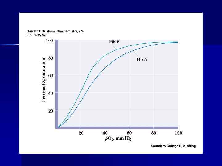 Состав гемоглобинов взрослого человека Фракция n n n n Hb A 0 Hb A 2 Hb F Hb A 1 n Hb A 1 b Hb A 1 с Цепи Содержание % 2α 2 β > 90 2 α 2δ < 1, 5 2 α 2γ < 1, 0 2α(2β фруктозо-1, 6 - дифосфат) <1, 0 2α(2β глюкозо-6 - фосфат) <1, 0 2α(2β фруктоза) <1, 0 В фетальном гемоглобине вместо β-цепей содержатся γ-цепи, имеющие меньше положительных зарядов в месте связывания 2, 3 ДФГ. Поэтому сродство фетального гемоглобина к кислороду выше.