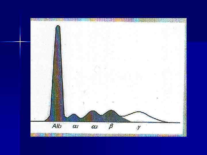 Белковые фракции В сыворотке крови можно выявить методом электрофореза на бумаге – 5 фракций, в ПААГе – 12 -19 фракций, методом двухмерного электрофореза – более 300 фракций. n При комплексной оценке изменений белковых фракций принято выделять определённый для ряда патологических состояний тип протеинограммы ( по А. А. Покровскому, 1969) n