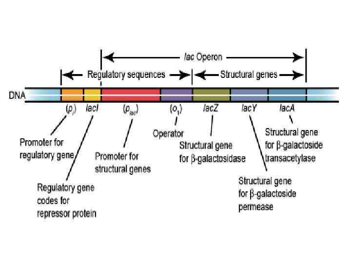 • Оператор является участком, с которым происходит связывание белка репрессора. • Терминатор - участок, расположенный в конце оперона и дающий сигнал о прекращении транскрипции.