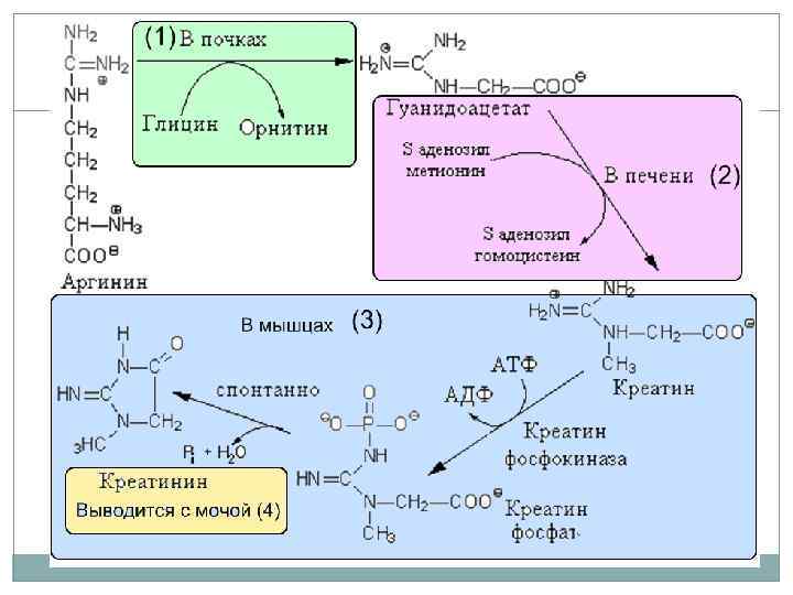 ФУНКЦИИ ПЕЧЕНИ 1. Гомеостатическая: поддерживает постоянство состава крови. 2. В обмене белков. Освобождающиеся в процессе пищеварения и внутриклеточного распада белков аминокислоты используются для: • синтеза белков плазмы крови (альбуминов, глобулинов, кроме глобулинов, факторов свёртывания крови); • образование α-кетокислот путём трансаминирования, окислительного дезаминирования и комбинации этих процессов (непрямое дезаминирование); • глюконеогенеза из глюкогенных аминокислот; • кетогенеза из кетогенных аминокислот; • получения энергии путем превращений в цикле трикарбоновых кислот; • синтеза мочевины; • синтеза креатина, холина.