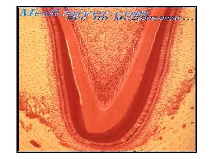 Пульпа (pulpis dentis) — рыхлая волокнистая соединительная ткань, заполняющая полость зуба, с большим количеством кровеносных, лимфатических сосудов и нервов. По периферии пульпы располагаются в несколько слоев одонтобласты, отростки которых находятся в дентинных канальцах на протяжении всей толщи дентина, осуществляя трофическую функцию. В состав отростков одонтобластов входят нервные образования, проводящие болевые ощущения при механическом, физическом и химическом воздействий на дентин.