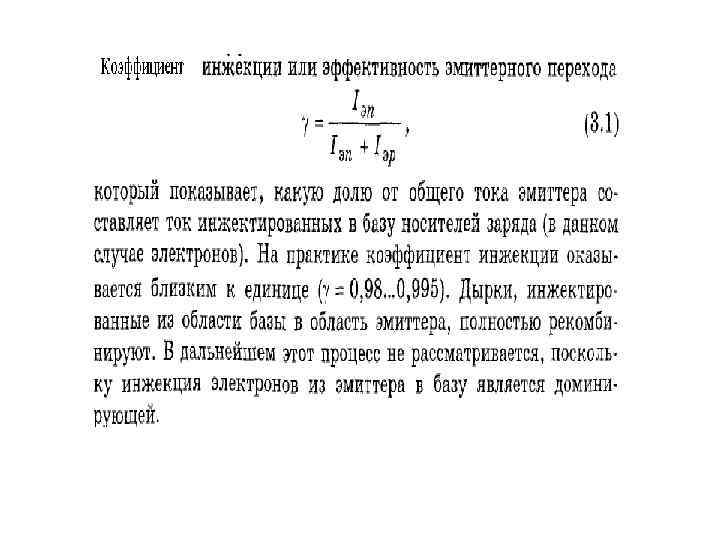 Основные параметры биполярного транзистора • 1. Коэффициент передачи по току в схеме общая база - ; • 2. Коэффициент передачи по току в схеме общий эмиттер – β; • 3. Дифференциальное сопротивление эмиттерного перехода; • 4. Дифференциальное сопротивление коллекторного перехода; • 5. Объемное сопротиаление базы; • 6. Диффузионная емкость эмиттерного перехода; • 7. Барьерная емкость коллекторного перехода