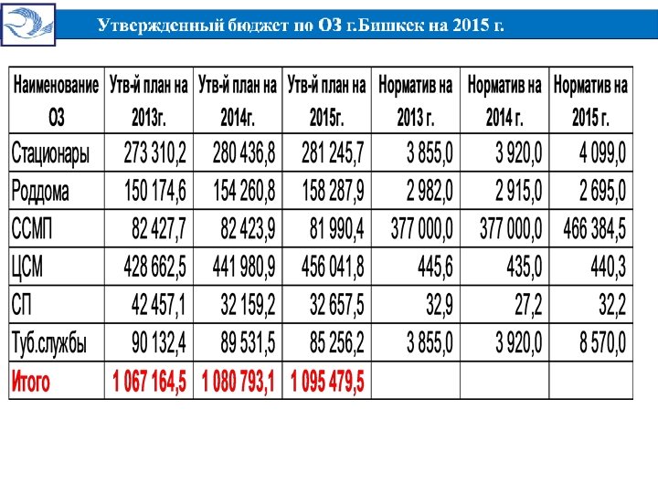 Утвержденный бюджет по Республиканским ОЗ г. Бишкек на 2015 г.